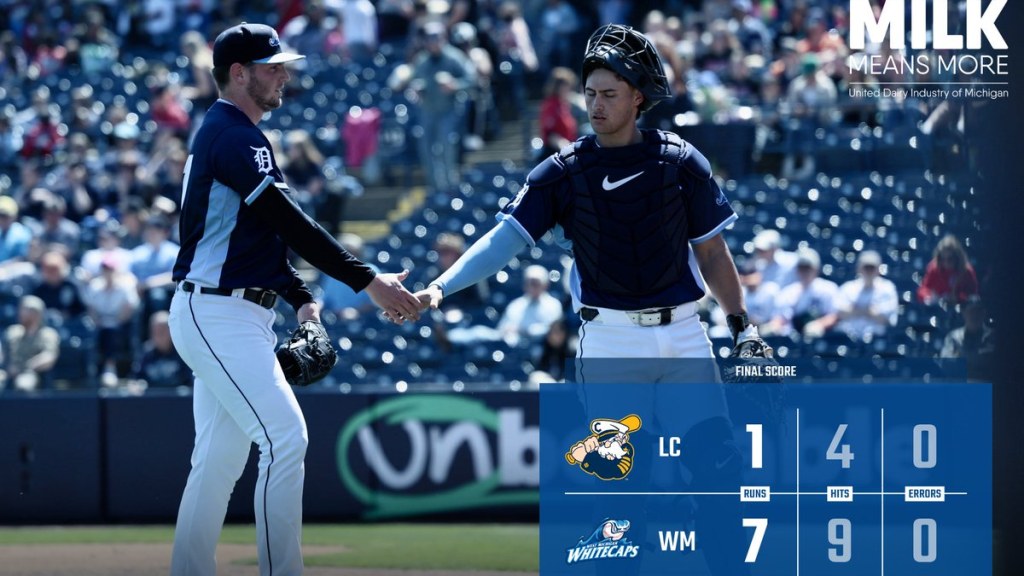 After Minton escaped a bases-loaded jam in the second inning, Tilien came through with his three-run home run in the bottom half, giving the Whitecaps a 3-0 lead. Lake County and West Michigan traded individual runs in the third inning, as Captains infielder Dean Curley added an RBI double before ‘Caps outfielder Nolan McCarthy responded with an RBI single, stretching West Michigan’s lead to 4-1. The Whitecaps bullpen was automatic after the third inning, as relievers Duque Hebbert, Zack Lee, and Logan Berrier combined to allow just one hit over 5.2 innings while striking out 10. At the same time, the ‘Caps plated a run in the fifth on an RBI triple from Cristian Santana before scoring a pair in the seventh, highlighted by a two-run double from Clayton Campbell, putting the finishing touches on the convincing 7-1 victory.