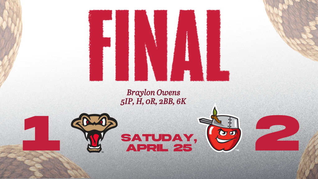 Payne brought the Rattlers to within a run on a tape-measure, solo homer with one out in the top of the ninth. Payne has hit five home runs on the season. He was 2-for-4 on Saturday and is 7-for-15 with three homers in the four games he has played in this series against the TinCaps.