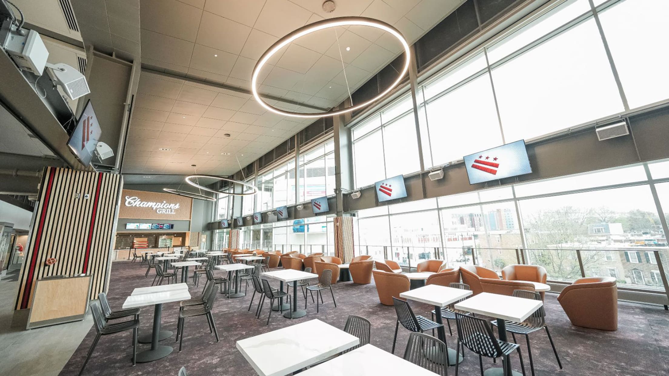 The FIS Champions Club is a versatile and open space, spanning the ballpark from first to third base. It is the optimal setting for large gatherings from galas to dinners. With its built-in bars, floor-to-ceiling windows and spectacular views of both the field and the Anacostia River, the FIS Champions Club will dazzle your guests.