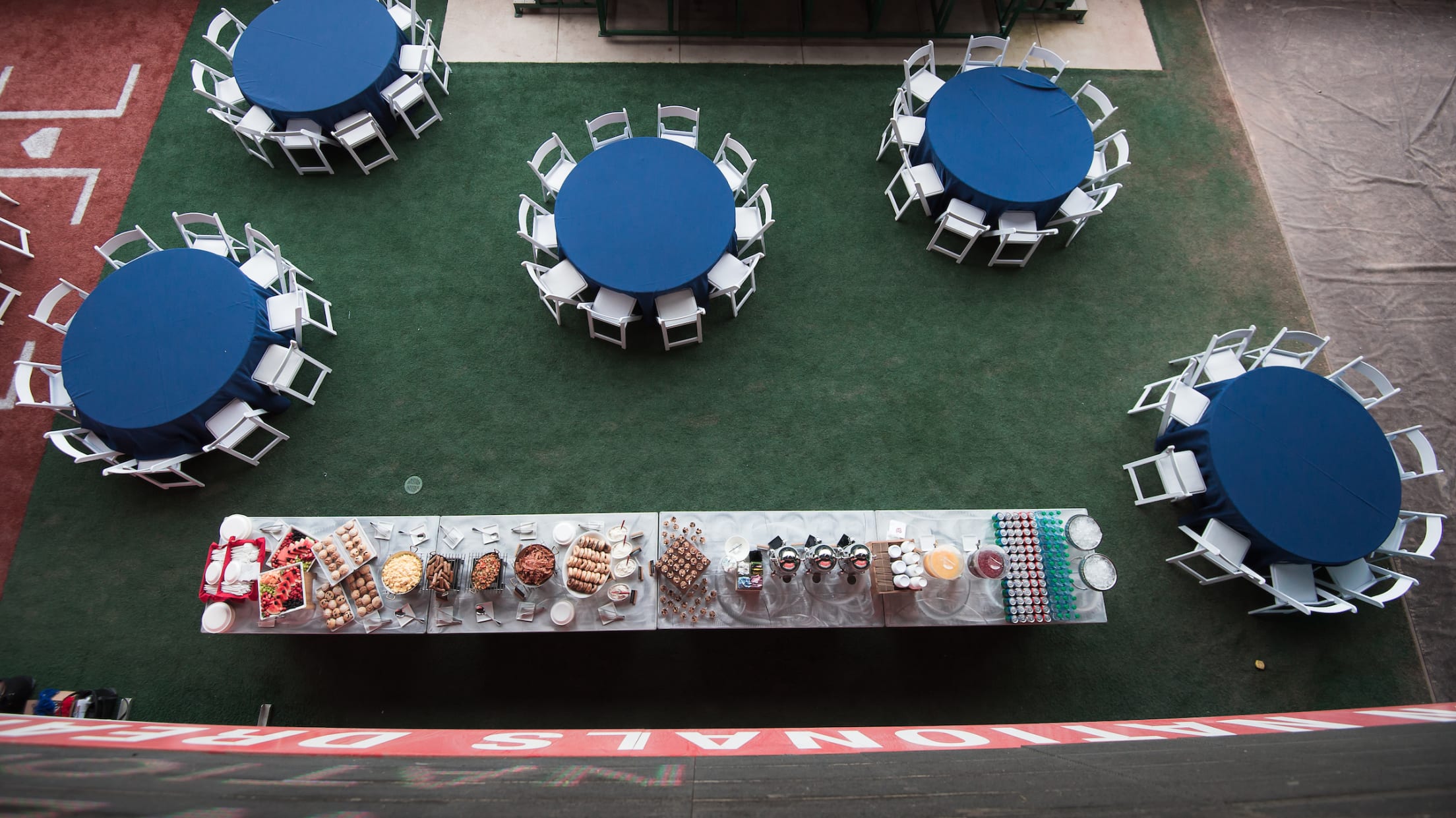 Host your event where the Nationals relief pitchers watch the game and warm up. The Bullpen can be transformed into a reception or meal space that will provide a truly incredible perspective for your guests. Immediately adjacent to the warning track and field, this space stands on its own or easily adds on to your larger event.