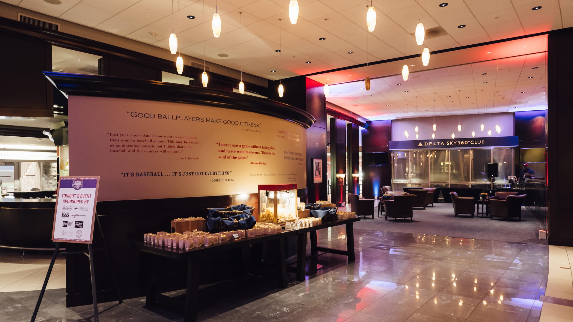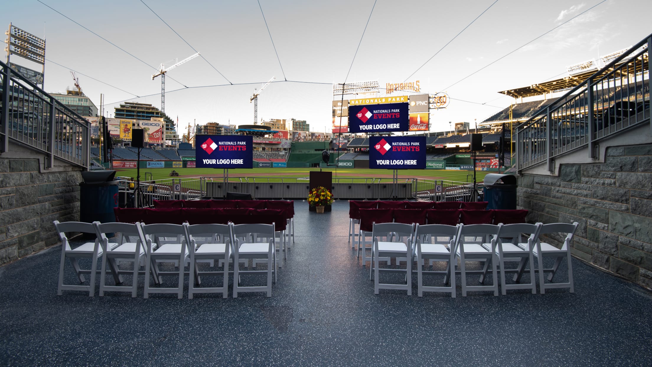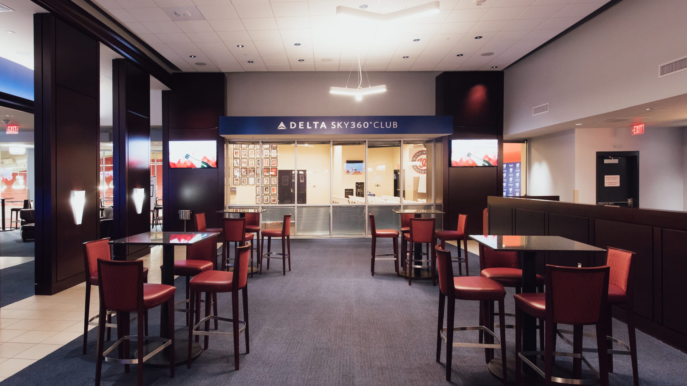 The Delta Sky360 Club is an exclusive venue that caters to Washington, D.C. Located directly behind home plate on the field level, it offers tall ceilings with mahogany and granite finishes. Take in a drink at the distinctive oval bar or add an indoor batting-practice experience and watch guests take their swings from above. This space also features a terrace that is the ideal place for a stage or to extend your reception and capitalize on the best view of the Park.