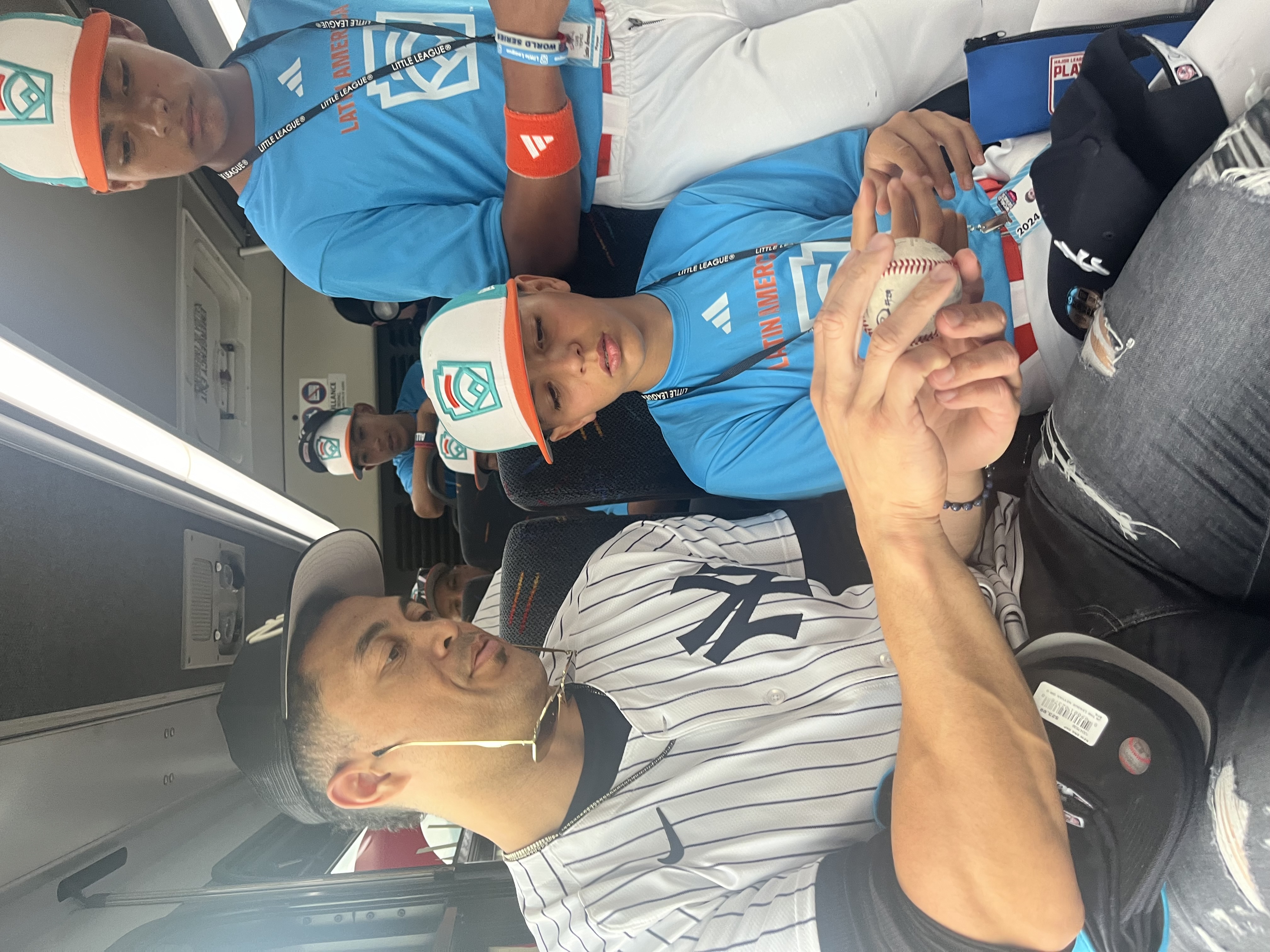 "The Little League Classic was one of the best events I’ve had the opportunity to cover, because of moments like this one. I snapped this photo of Giancarlo Stanton teaching pitch grips to Little Leaguers on the bus ride from the Williamsport airport to the Little League complex. The kids were obviously excited to meet players like Stanton, Aaron Judge, Gerrit Cole and Jazz Chisholm Jr., but the pro athletes seemed to get just as much of a kick out of the experience."