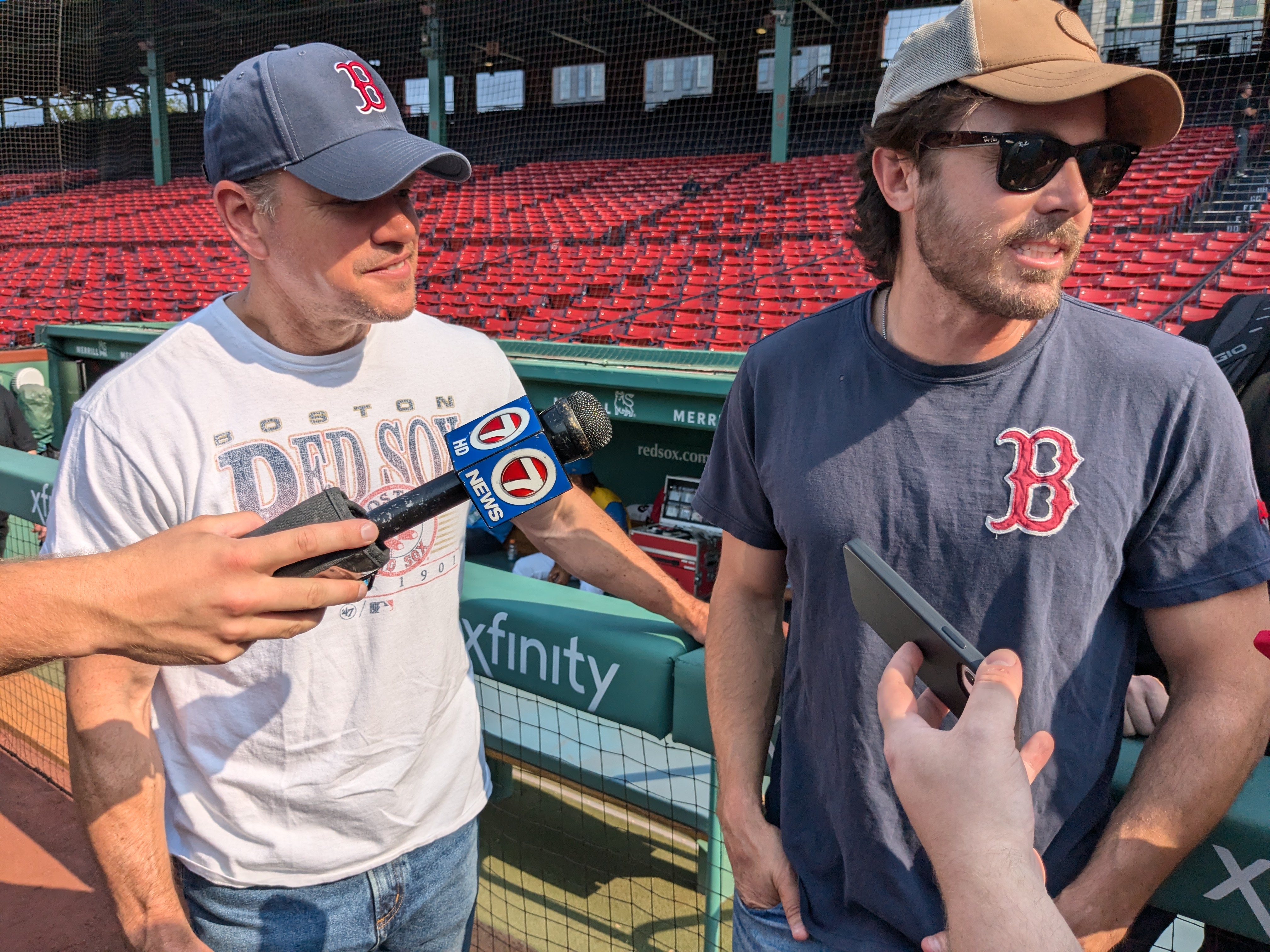 "Matt Damon and Casey Affleck, two Boston-born actors, swung by Fenway Park to promote their new movie. It was cool to be able to ask both of them questions about the Red Sox. I'm a big fan of them both."
