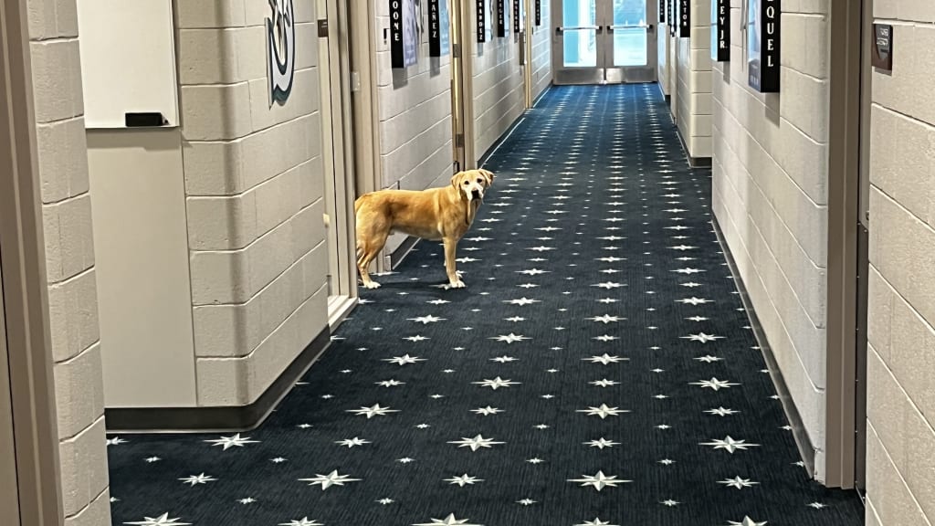 "Tucker, the Mariners' clubhouse dog, prowls for treats, friends, mischief and anything in between at Seattle's Spring Training facility. Adopted in 2022 through a shelter in Eastern Washington, Tucker is a ubiquitous presence throughout the season -- but especially in Spring Training, his favorite time of year due to the wide range of freedom and real estate he has to roam in sun-soaked Arizona."