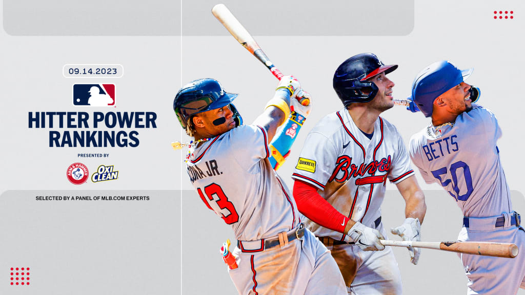 This is our 13th edition of the Hitter Power Rankings in 2023 and the first in which a team claimed both of the top two spots. That’s thanks to Atlanta’s Ronald Acuña Jr. and Matt Olson besting the Dodgers duo of Mookie Betts and Freddie Freeman in a contest that is sure to play out again in NL MVP Award voting -- and possibly in the NL Championship Series as well. (It should be noted that Shohei Ohtani's recent absence due to an oblique injury also opened the door for the Braves’ fearsome twosome.)