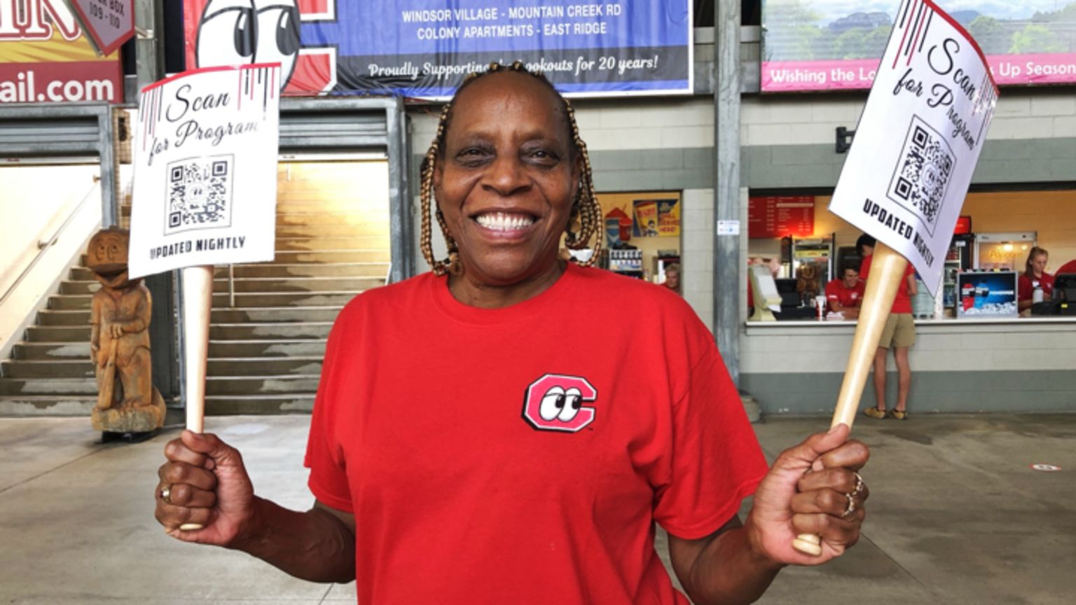 In 2020, there was no Minor League Baseball and February 2021 my son Harry was born. In the midst of that, the MiLB landscape was reconfigured. When I finally got back on the road, to Chattanooga, Wanda the Program Lady was there to greet me with a smile.