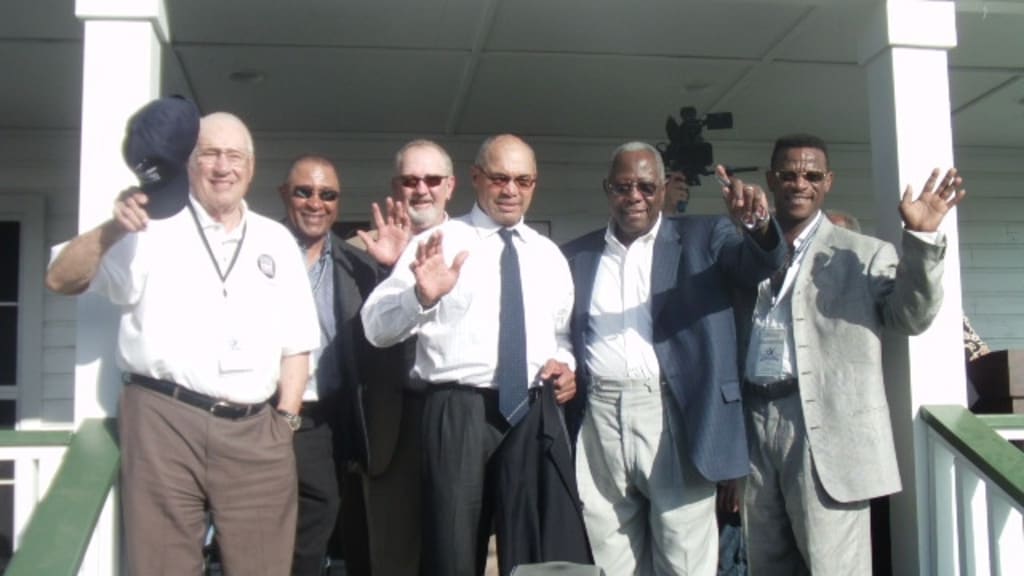 It all began in 2010. The first stop of my first ever trip was Hank Aaron Stadium, home of the Mobile BayBears. Aaron’s childhood home was moved to the ballpark and converted into a museum; somehow, I was the only national writer in attendance at the star-studded opening ceremony. The photo at the top of this article features Bob Feller, Ozzie Smith, Bruce Sutter, Reggie Jackson, Aaron, and Rickey Henderson. Not pictured, but also in attendance: Aaron’s fellow Alabaman, Willie Mays.