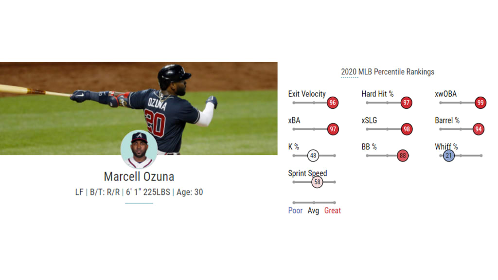 Ozuna seemed like a sort of sleeping giant in St. Louis, right where Cardinals fans thought he should be in terms of hard-hit rate and exit velocity but shy on outstanding results. Well, sometimes life isn’t fair -- because Braves fans got to reap the benefits when the bill for all that hard contact finally came due. Serving as the lineup protector Freddie Freeman probably dreamt about for years, Ozuna finished ‘20 roughly within MLB’s top 5% in all the Statcast goodies you want from your potential home run leader: exit velocity, hard-hit rate, barrel rate and expected slugging.