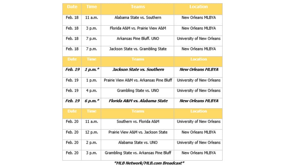 In celebration of Black History Month, the “Andre Dawson Classic,” the tournament launched in 2008 by MLB to highlight Historically Black Colleges & Universities (HBCUs) and their baseball programs, will return to New Orleans for the eighth time with games hosted at both the New Orleans MLB Youth Academy and Maestri Field at University of New Orleans. Participating teams, including seven HBCU programs, are as follows: