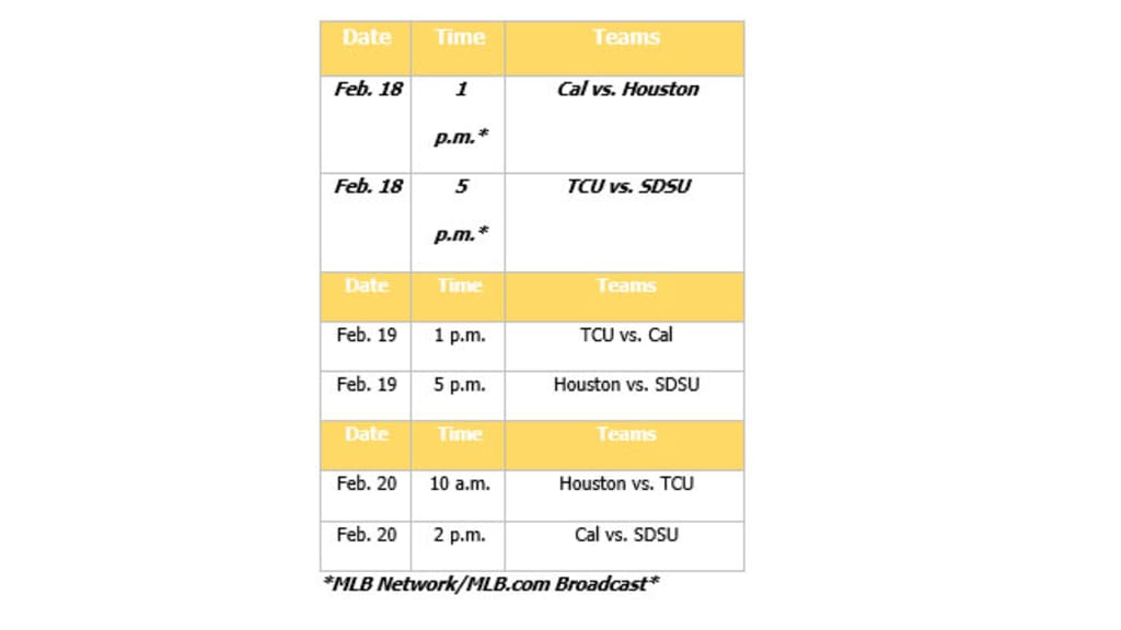 Historically, the showcase has featured Vanderbilt University, University of Michigan, California Polytechnic State University (San Luis Obispo), University of Connecticut, University of Virginia and California State University (Fullerton). The full schedule (all times MT) for the 2022 MLB4 is as follows (dates, times and match-ups subject to change):