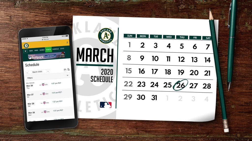 The A’s kick off the season with a visit from the Twins, the first time the two clubs will meet on Opening Day since 1991. That four-game series (March 26-29) begins an opening month that includes matchups with the Astros (March 30 to April 1), Yankees (April 10-12) and Red Sox (April 13-15) in Oakland.