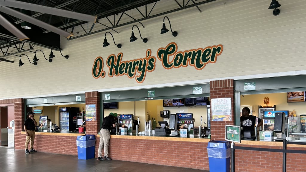 He and I took a tour of the Grasshoppers concession stands, which are named after notable figures from Greensboro’s history. Figures like O. Henry, a writer best known for his short stories with unexpected and often ironic twist endings.