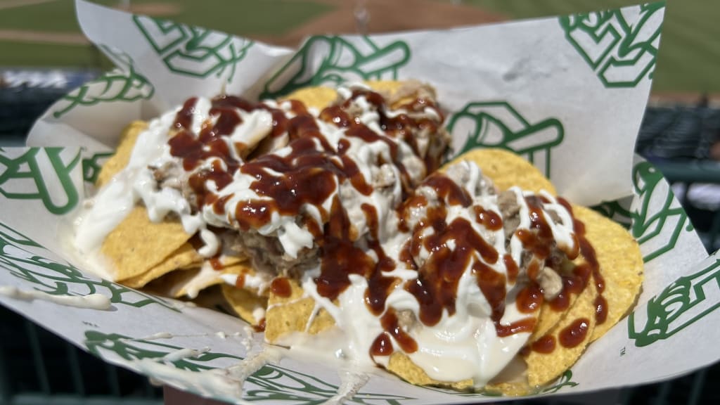 Nachos were a mere amuse-bouche in comparison to the next item, a Connie Mack Attack procured from the Hoppin’ Hound Dogs cart. (The Connie Mack Attack was the most formidable item on the menu, but not the most creatively named. That honor goes to This Dog Willie Mays You).