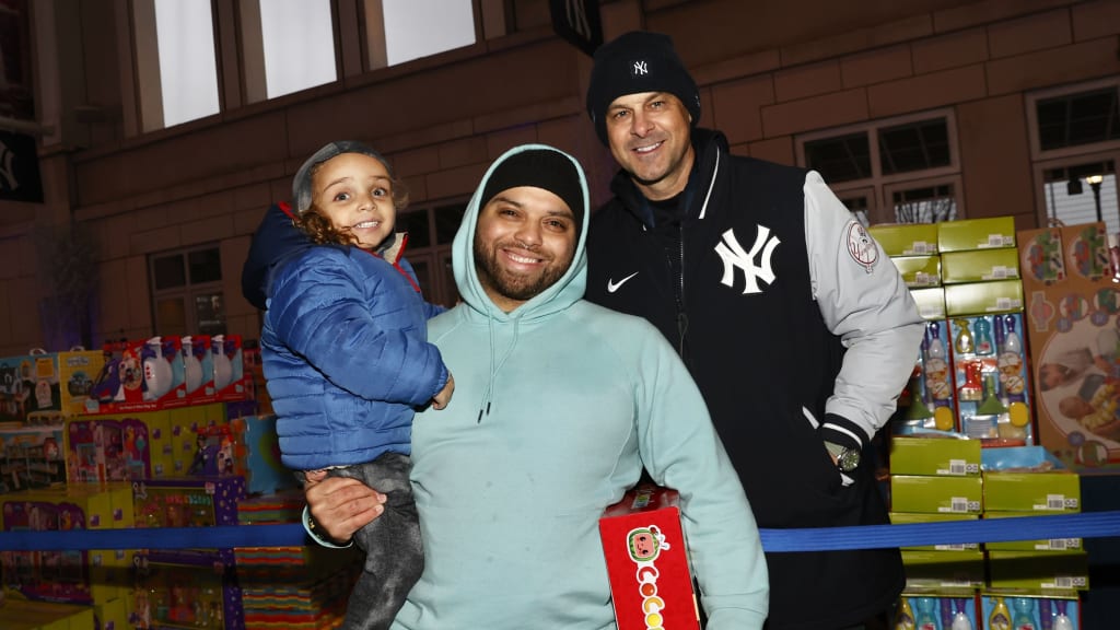 Yankees manager Aaron Boone joined in to spread the holiday cheer, greeting the kids and helping them pick out their presents.