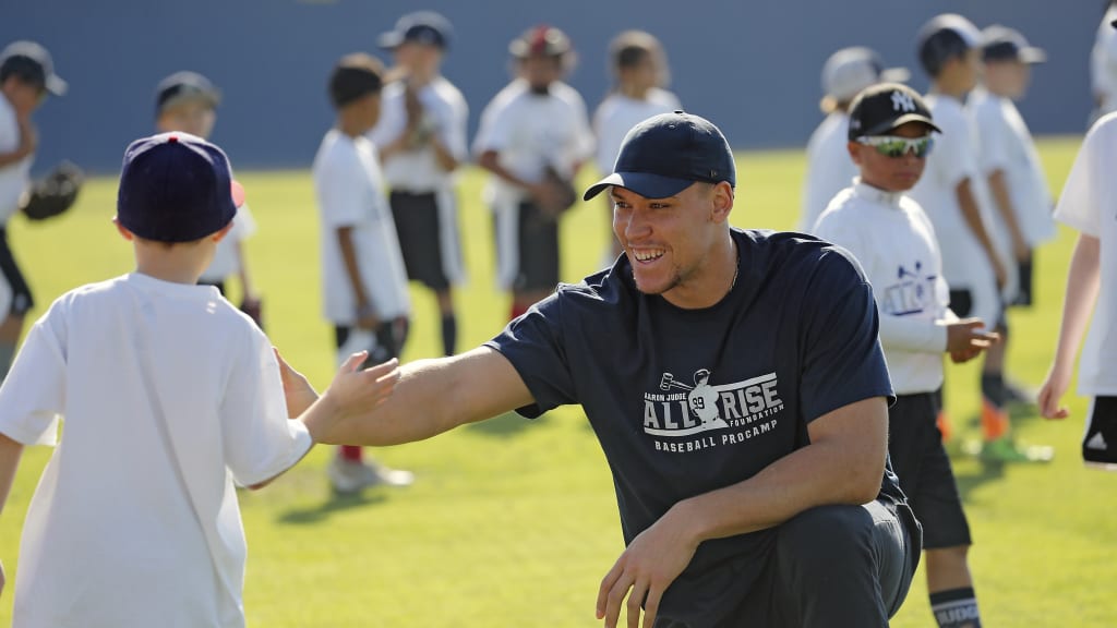 He runs around. He sweats. He smiles. The free clinic is being run by ProCamps, an organization that supports athletes’ foundations in all sports, and one of the keys, ProCamps president Eric Liebler says, is to make sure that the finished product reflects the individual players at the center, rather than just putting on a color-by-numbers afternoon with a famous face. For Patty and Aaron, the educational component was always going to be primary, and Liebler says that Judge, despite his youth, is one of the best he has ever seen at interacting with kids and delivering the most impactful afternoon possible. And while everyone behind the scenes mentions the ways that friends such as CC Sabathia have helped Aaron craft his philanthropic identity, Judge himself shifts the credit to his parents and the lessons he learned while shadowing them in their classrooms.