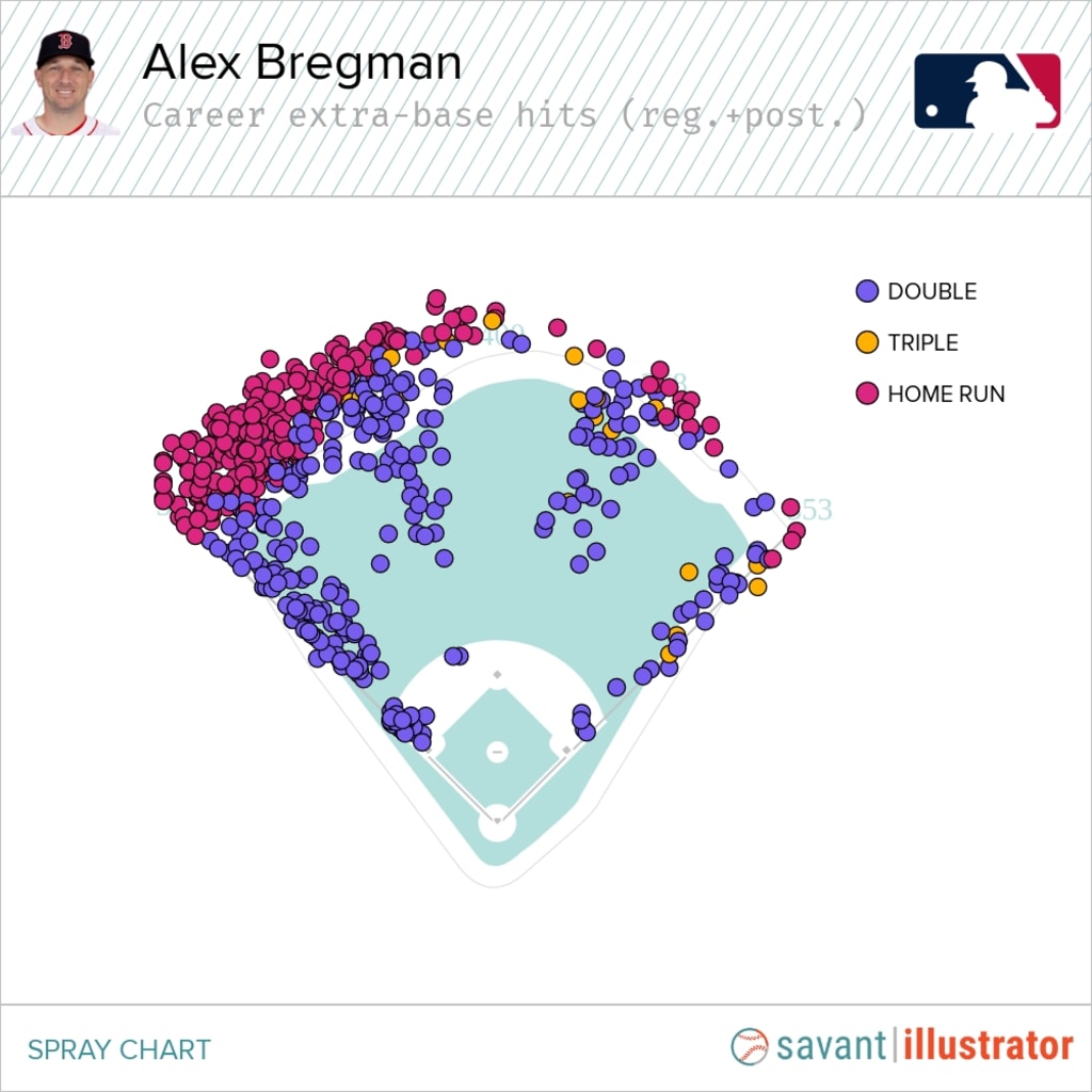 No matter what timeframe you look at for Bregman -- his whole career, the past few seasons or the 2025 season only -- the results are essentially the same. Bregman is going to drive the ball to left field, and he's going to rack up extra-base hits by doing so.