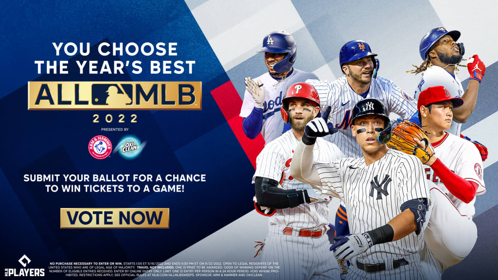 Nominees were announced on Thursday for the 2022 All-MLB Team, which -- as in each of the past three years -- will be split into a First and Second Team. Fans can vote once every 24 hours between now and 5 p.m. ET on Nov. 22, with 50% of the vote coming from fans and 50% coming from a panel of experts. Winners will be announced on MLB Network at 8 p.m. ET on Dec. 5.