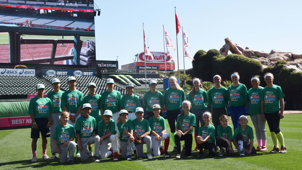 ANAHEIM -- Two dozen baseball and softball players, ages 7-14, took the field at Angel Stadium on Saturday, most for the first time in their lives, as Scotts Major League Baseball Pitch, Hit & Run event afforded them the opportunity to do so.