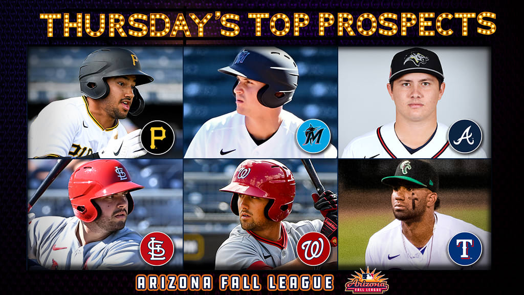 \n","providerName":"Twitter","providerUrl":"https://twitter.com","thumbnail_url":null,"type":"oembed","width":550,"contentType":"rich"},{"__typename":"Markdown","content":"**Cardinals: Juan Yepez, OF (No. 27), Glendale Desert Dogs** \nYepez impressed all season at the plate and has continued his hot hitting in Arizona as a stalwart in Glendale’s lineup. The right-hander went 2-for-5 with two RBIs and two runs scored in the Desert Dogs’ 10-5 win, boosting his average to .333 through six Fall League games. Both of Yepez’s RBIs came on his first-inning double, his third of the season, to kick off the scoring for Glendale. Yepez has totaled four extra-base hits in six games, showing off the over-the-fence and gap power that led him to hit careeer highs of 27 homers and 29 doubles in the regular season. More »","type":"text"},{"__typename":"Markdown","content":"**Nationals: Jackson Cluff, SS (No. 19), Surprise Saguaros** \nCluff reached base four times in five plate appearances and drilled his first Fall League homer, a two-run blast in the second inning that put Surprise up 3-0. The 24-year-old went 2-for-3 with four runs scored, three RBIs and two walks during his productive day in the batter’s box. Cluff is one of seven Saguaros rocking an OPS over 1.000 through the first seven games of the season, posting a slash line of .308/.412/.615 with a 1.027 OPS in 17 plate appearances to begin his time in Arizona.","type":"text"},{"__typename":"Markdown","content":"**Rangers: Ezequiel Duran, 3B (No. 7), Surprise Saguaros** \nDuran hit out of the nine-hole for the Saguaros but was the main driver of the offense in Surprise's 17-2 rout of Scottsdale. The 22-year-old knocked a home run, two doubles, drove in five runs and scored three in a breakout performance. Duran’s first home run in the Fall League was a two-run tater in the fourth, and he tacked on RBIs with a ground-rule double in the seventh and a two-run double in the eighth. Duran boosted his average to .385 and his OPS to 1.308 through his first four AFL games.","type":"text"},{"__typename":"Markdown","content":"**Yankees: Austin Wells, C (No. 6), Surprise Saguaros** \nWells has come out of the Fall League gates on fire, going 9-for-18 with five extra-base hits in his first five games. The slugging catcher whacked his first home run in Surprise’s 17-2 win, going 3-for-4 with his third double, three runs, a walk and a strikeout. Wells’ three-hit day came on the heels of a four-hit, four-RBI game Monday, and the lefty has posted a slash line of .500/.550/.944 for a 1.494 OPS. Wells flashed his in-game power with 16 homers and 44 extra-base hits in 103 games during the regular season and is already turning heads in Arizona. More »","type":"text"},{"__typename":"OEmbed","html":"