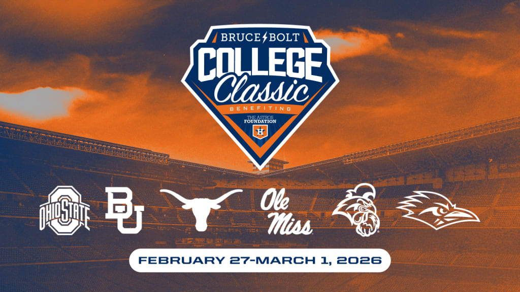 The Houston Astros will host the BRUCE BOLT College Classic benefiting the Astros Foundation at Daikin Park this weekend, from Feb. 27-March 1, 2026. The 26th annual three-day, six-team, nine-game tournament features four teams that played in 2025 Regionals, including the SEC champion Texas, the national runner-up Coastal Carolina, the AAC champion UTSA and perennial powerhouse Ole Miss. Joining that quartet will be Baylor and Ohio State.