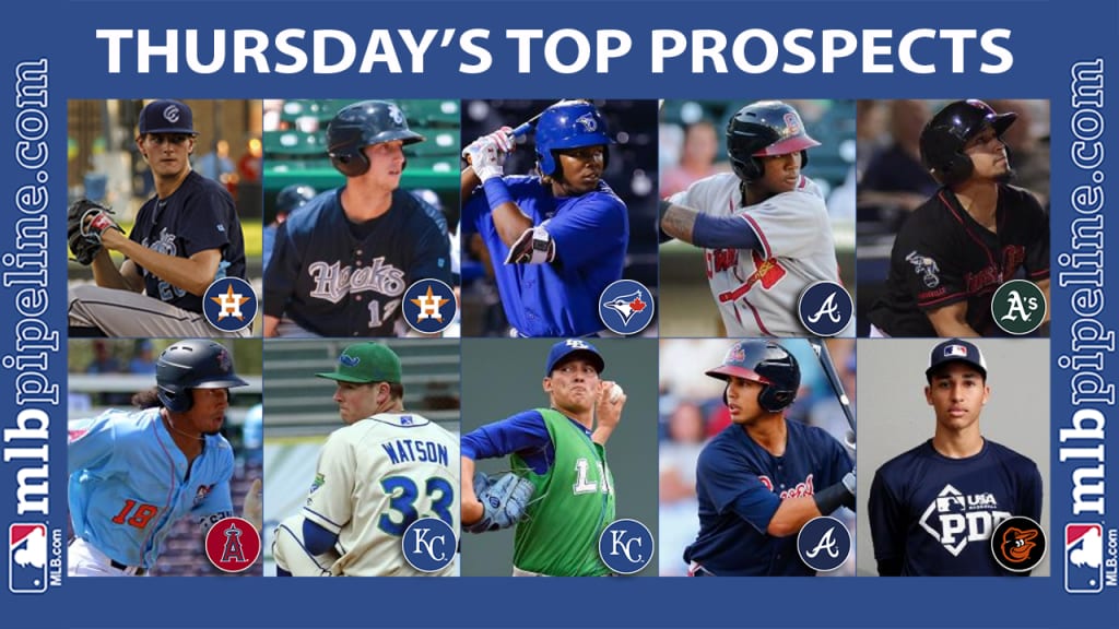 • No. 8 overall prospect Ronald Acuna (Braves' No. 1) continued his assault on International League pitching as he homered in his third straight game for Triple-A Gwinnett. The homer, a leadoff shot in the top of the first, gives the 19-year-old outfielder four home runs in his last five games and 20 home runs this season, making him one of five Minor Leaguers this season to accrue at least 20 homers and 20 stolen bases. Rio Ruiz (Braves' No. 21) also went deep for Gwinnett, as he connected on a pair of solo homers -- Nos. 12 and 13 this season for the switch-hitting third baseman -- before finishing 2-for-4.