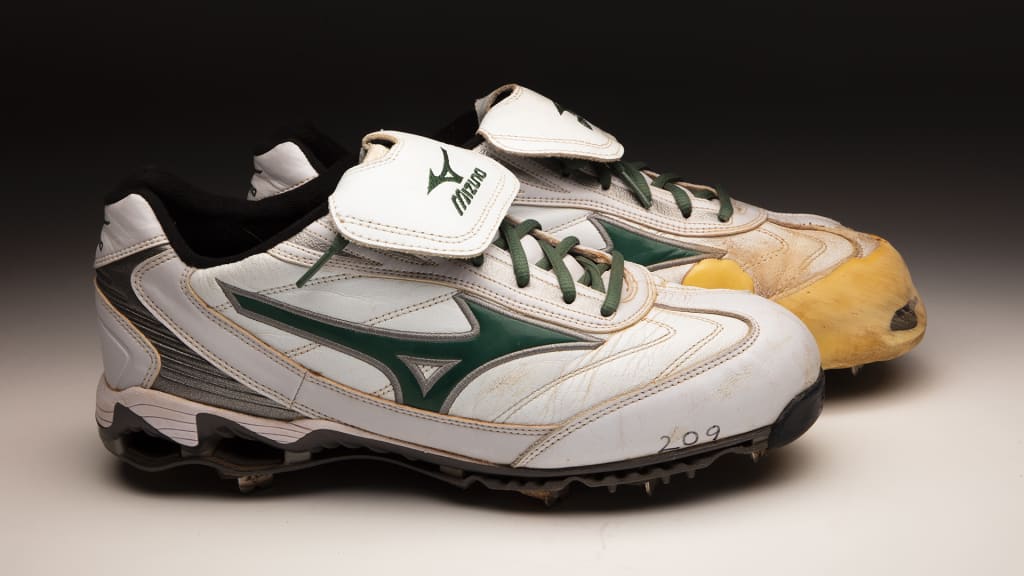 Fun facts: Henderson stepped into these spikes on Aug. 27, 1982, at Milwaukee before stealing his 119th base to break the single-season record that St. Louis’ Lou Brock set in '74. Henderson never stopped running, leading the American League in thefts 11 times from '80-91. He finished his career with 1,406 steals, including 867 with the A’s.