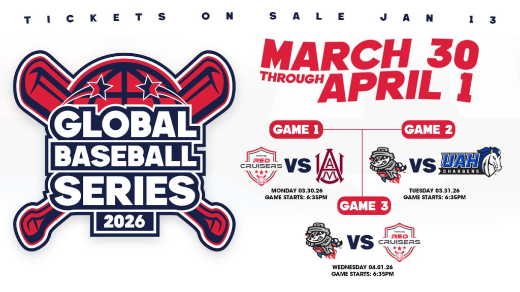 This unprecedented occasion highlights the Trash Pandas' inaugural Global Baseball Series, described as an "international community-driven cultural exchange event." Participating teams include the Trash Pandas, Alabama A&M University and the University of Alabama in Huntsville, with the Toyota Red Cruisers providing the international component.
