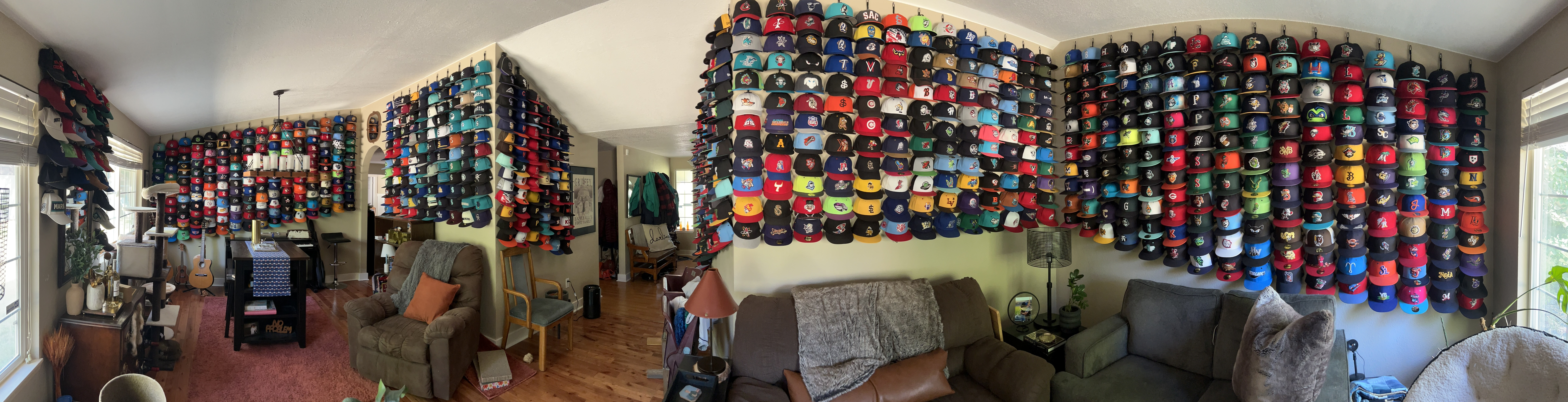 Erik has worked for the Dust Devils since the team's 2001 inception, starting as a peanut vendor and going on to become the face of the franchise. I wrote a story about him the last time I visited the Dust Devils, in 2016. Since then, a life-size bobblehead of Erik was installed on the Gesa Stadium concourse. He is both literally and figuratively a man of many hats, as evidenced by the gargantuan cap wall he has installed in his living room.