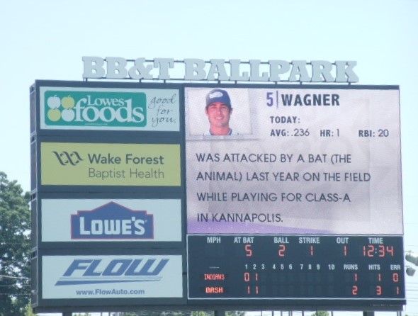 With this itinerary, there were two distinct goals. The first was to return to Truist Stadium, the home of the Winston-Salem Dash. The first time I was there was during my first trip to North Carolina, in 2011, and I never made it back (not that I hadn’t tried, it’s just that the home-road scheduling gods were always against me). Thirteen years later, I’ll be watching the videoboard to see if they can top this nugget: