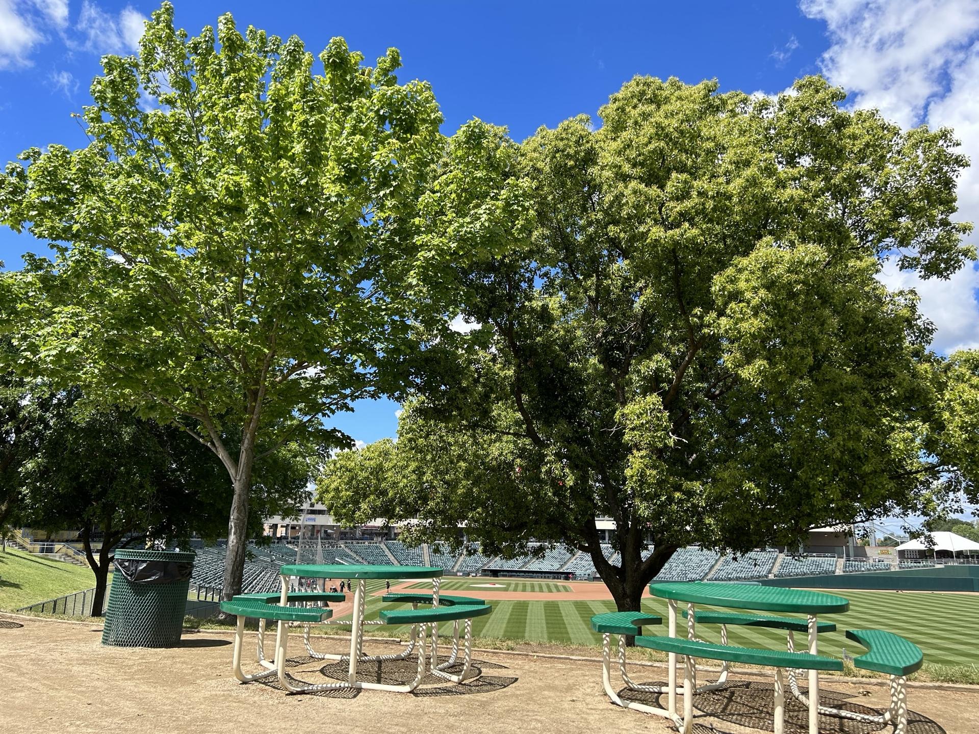 Speaking of shade, there’s plenty of it throughout the ballpark via a spacious covered concourse and, in the outfield, natural vegetation.