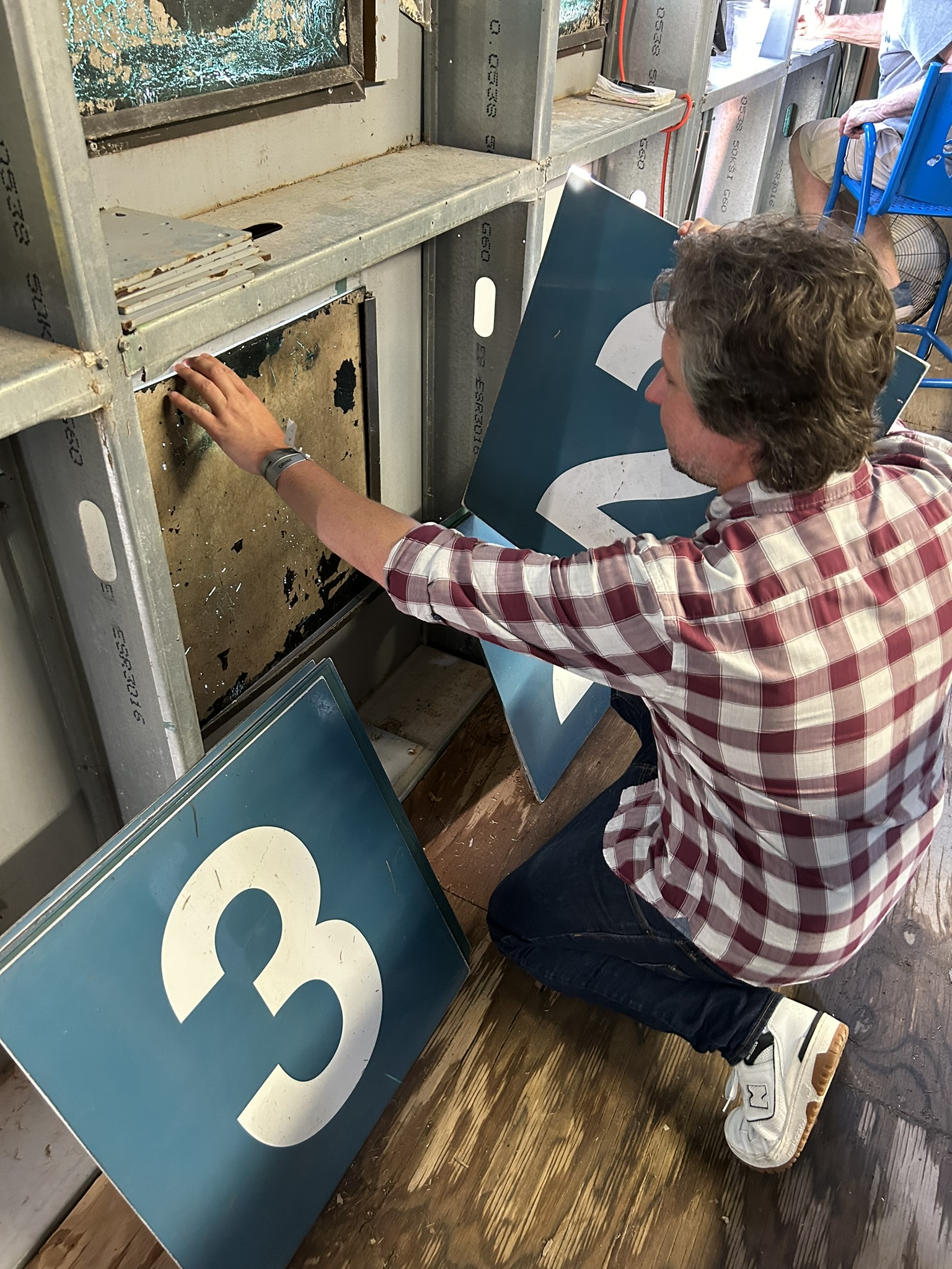 Chris allowed me to work the scoreboard for a moment, a very satisfying activity for those, like me, who appreciate well-affixed slats.