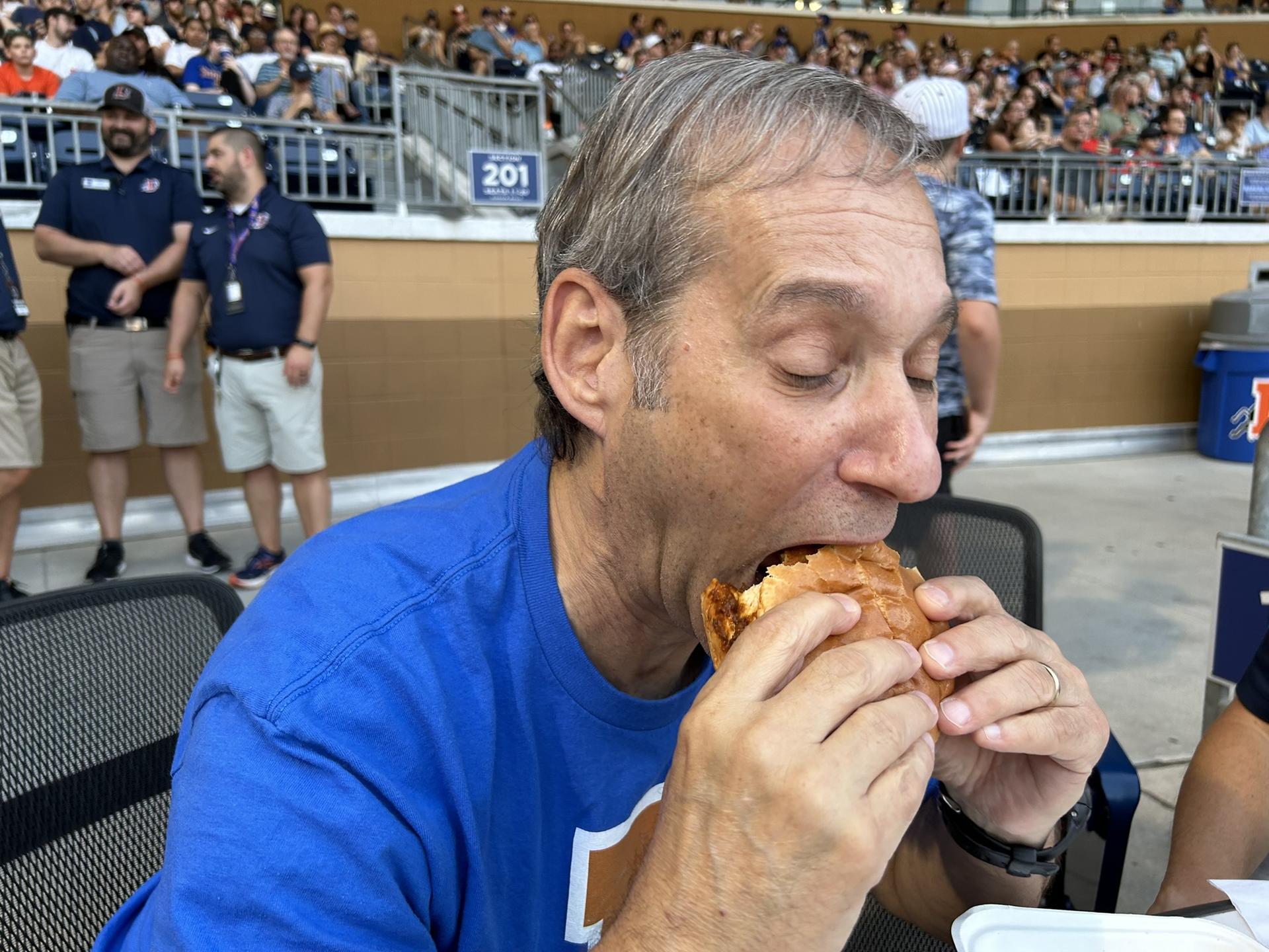 Many of you know, but for those that don’t: At every ballpark I visit, I recruit a Designated Eater, an individual tasked with eating the concession fare that my gluten-free diet prohibits. I’ve been showcasing Designated Eaters for over a decade and, as I often tell people, I hope that I would have eventually come up with the idea even if I hadn’t been diagnosed with celiac disease. It’s a fun way to meet fans across the country, all of them united in their love of ballpark food.