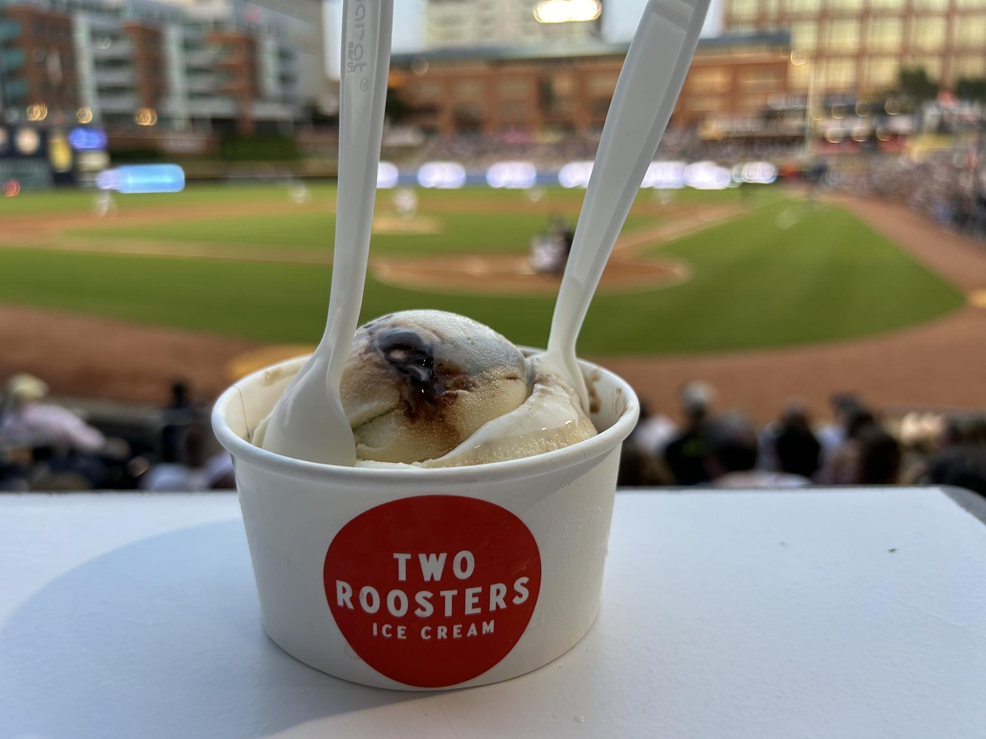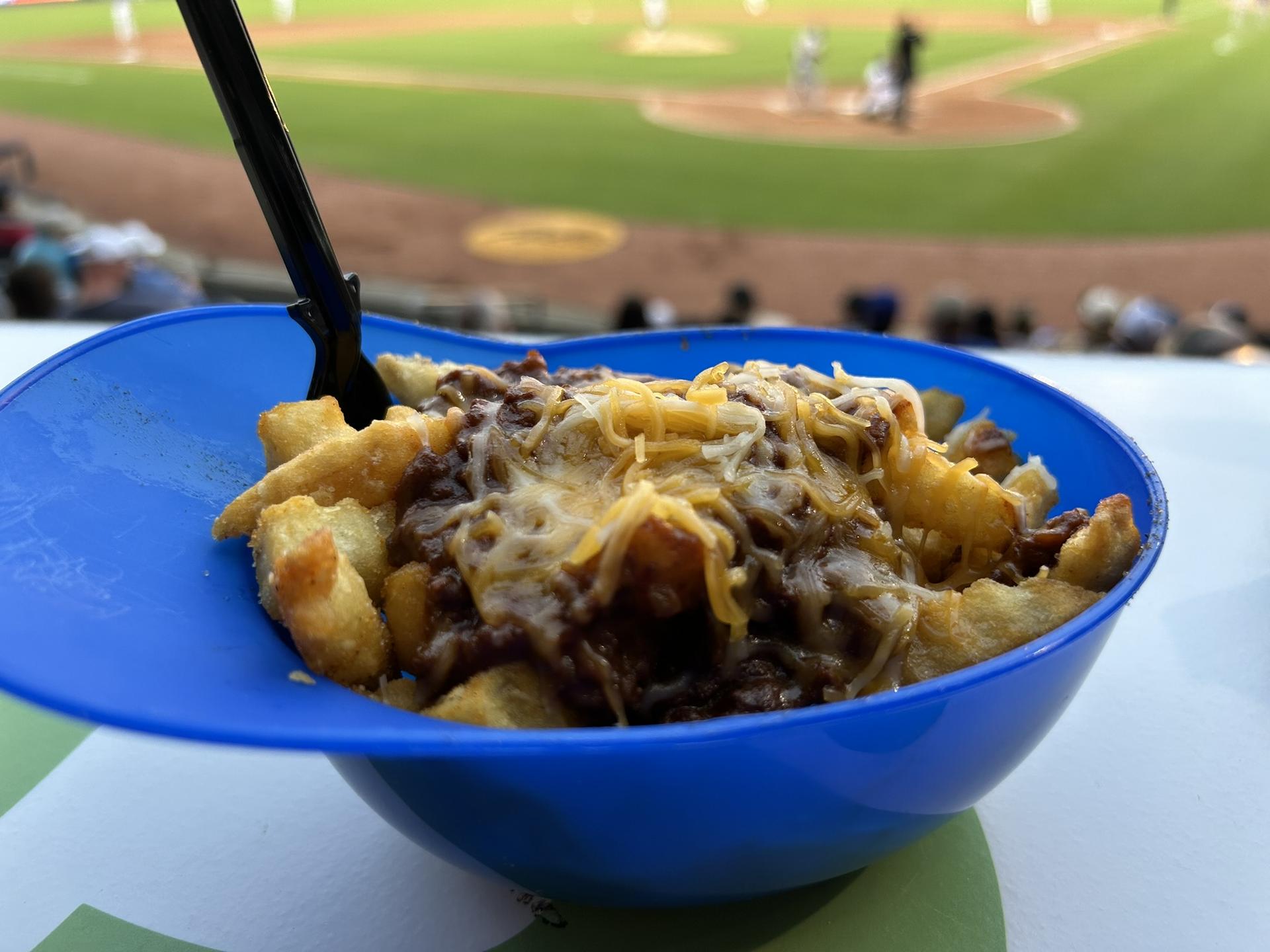 In the top of the fifth inning, I encountered Bulls president Mike Birling and GM Tyler Parsons standing on the concourse behind home plate. “I don’t know where my Designated Eater is,” I told them, as if this is a common problem. “Any recommendations for a new one?”