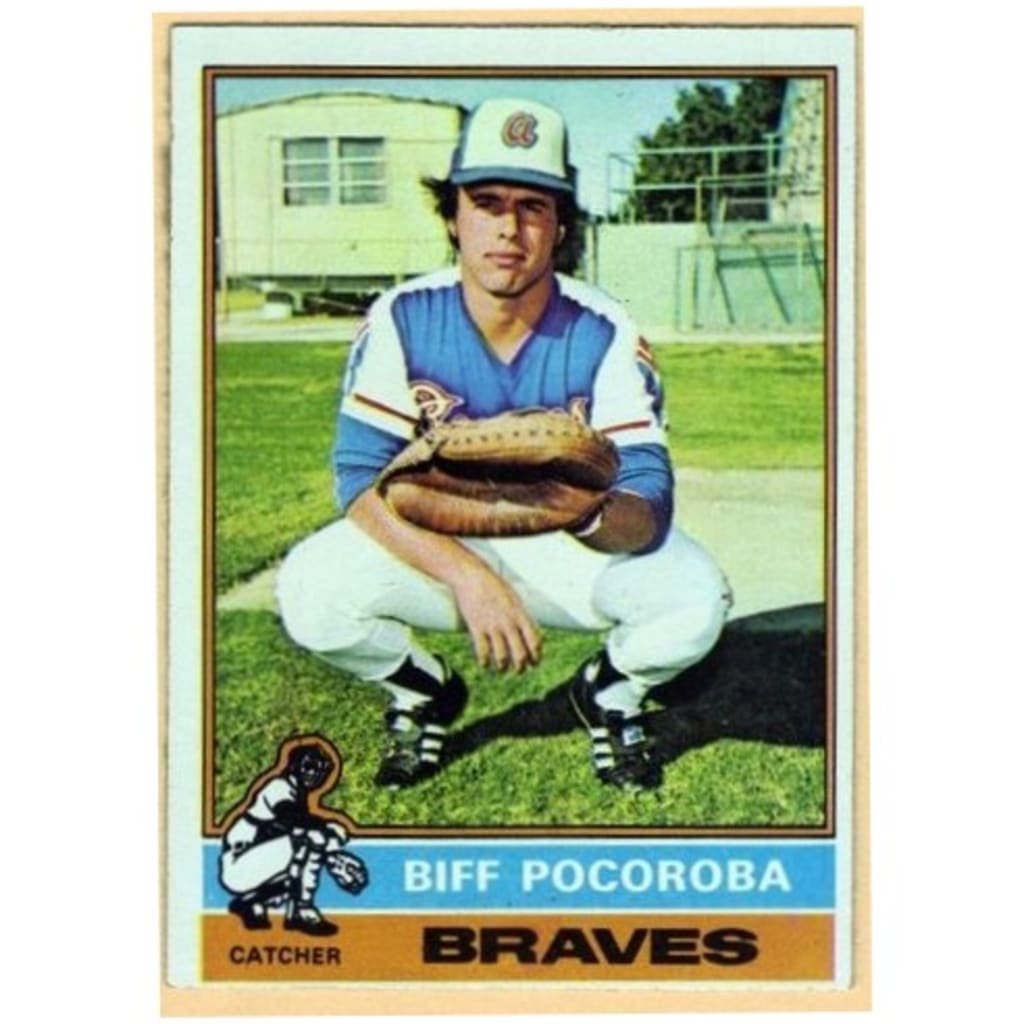 “My friends and I collected cards, and we always loved the 1976 Topps Biff Pocoroba, just for its weirdness,” Holtzclaw wrote. “The trailer in the background. The fake grass. The hair sticking out from under his cap. The squint into the sun. We joked that he made the team at the last minute and the Topps photographer banged on his trailer door and woke him for the photo. He didn't have time to comb his hair -- just squat down for a picture. The sun's in your eyes? Don't worry. Pocoroba died last year, and we all texted pictures of that card to each other. Back in the days when a baseball card photo didn't have to be good to be good enough."