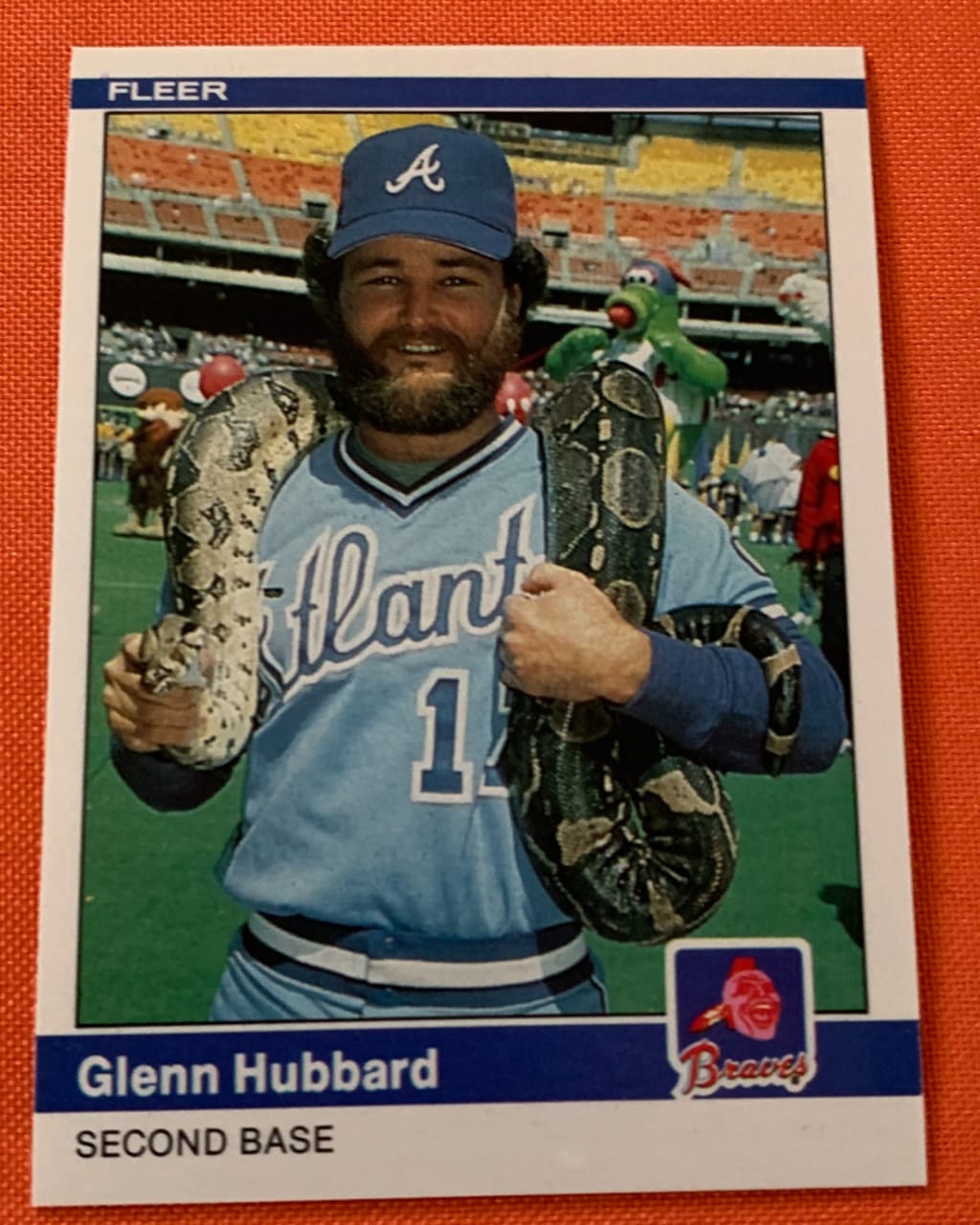 Fleer went out-of-the-box in its 1984 set, and this is about as out-of-the-box as it gets -- having a Major League second baseman drape a snake around his shoulders.