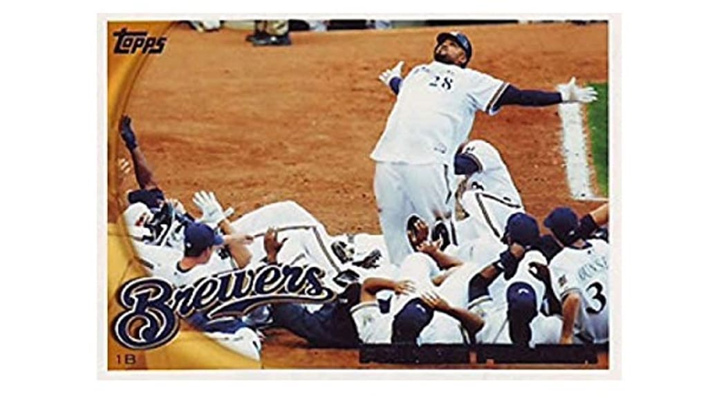 This is just a cool card. It was card No. 1 in Topps’ 2010 set, and it depicts the Brewers’ unique celebration at home plate after Fielder’s walk-off homer against the Giants in September 2009.