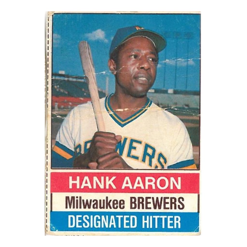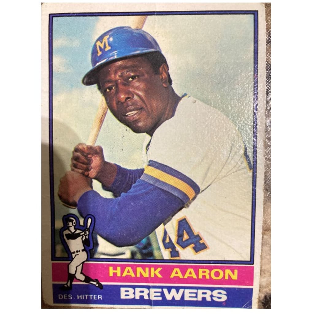 Aaron’s final Topps card as an active player came in the 1976 set. It was submitted by Brandon Chilson of Chamberlain, S.D., who wrote: