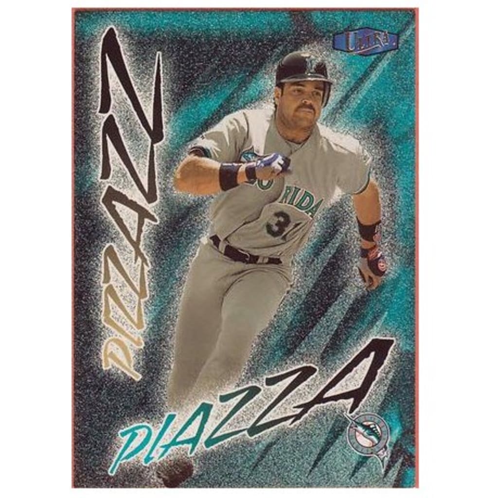 One of these was included in the ‘98 Fleer Ultra set as part of the outrageously ‘90s “PIZZAZZ” subset. The set also includes a late insert: card No. 501, which shows Piazza in a Mets uniform. -- Thomas Harrigan