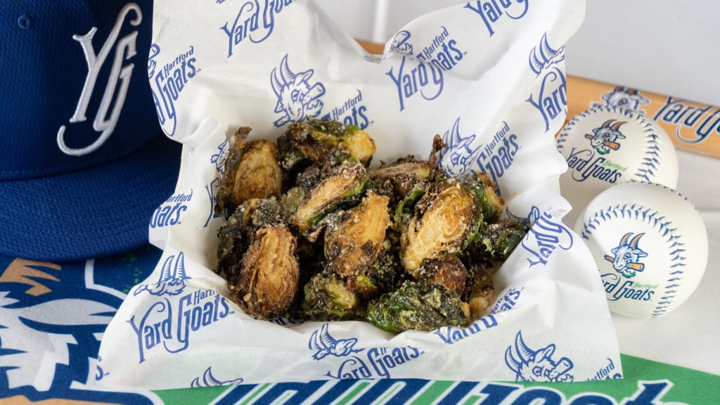 Within walking distance of some of Hartford's numerous restaurants, bars and entertainment options, the Yard Goats' stadium offers that rarest of combinations in Minor League Baseball: a great skyline view and live goats on site. Any night at Dunkin' Park is a great night, but this year visitors will get the chance to sample numerous truly unique concession items. Among the menu items the Yard Goats are introducing in 2026 are the Cinnamon Roll Burger (all-beef burger patty with Swiss cheese, bacon & BBQ sauce between two warm cinnamon rolls), the Premium BLT (a hot dog wrapped in bacon, served with pico de gallo and shredded lettuce) and -- if you can believe it -- the Garlic Parmesan Brussels Sprouts (deep-fried brussels sprouts coated with a garlic parmesan sauce and dusted with parmesan cheese).
