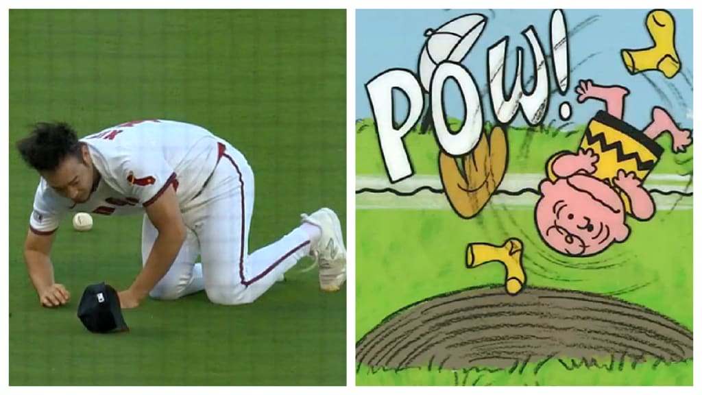 If you've ever read a "Peanuts" comic strip, you've seen it: Charlie Brown getting blown off the mound by a comebacker, hat and shoes soaring into the air. Angels pitcher Yusei Kikuchi decided to do his best impression against the Rangers' Sam Haggerty, losing his cap and glove before somersaulting on the infield grass.