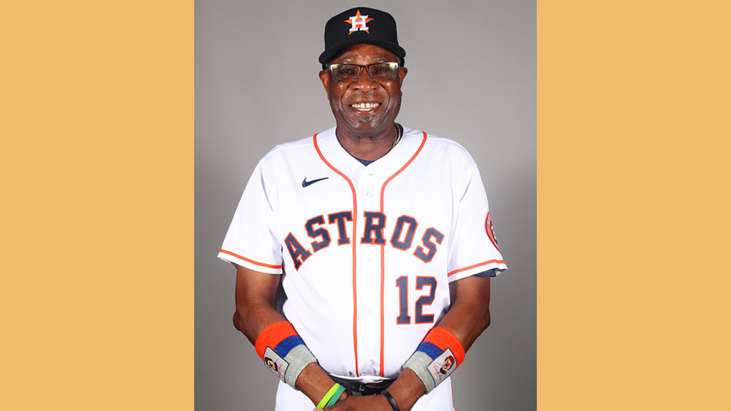 Look closely and you'll realize there are actually three Dustys in this photo: There's the real one and then the dueling Dusty Baker wristbands.