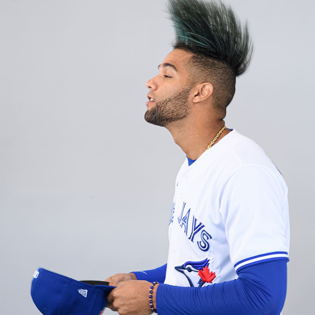 Gurriel's anti-gravitational hair was already cool enough. Add in the shock of blue dye and this could be a shampoo advertisement. (Maybe it should be a shampoo advertisement.)