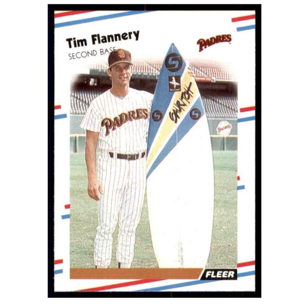 Flannery also was a surfing enthusiast, and his other passion was represented on his ‘88 Fleer card, which was submitted by Padres fan Jason Bugbee. Ironically, Bugbee made the opposite journey to Flannery, as he now resides in Oklahoma but was initially from San Diego.