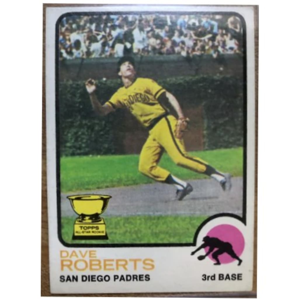 Roberts was the first overall pick in the 1972 MLB Draft and immediately made the leap to the Majors, debuting with the Padres on June 7, 1972. Although he hit .244 with five homers and a .595 OPS over 100 games as a rookie, Topps named Roberts to its All-Star Rookie team, as indicated by the trophy symbol on his '73 card.