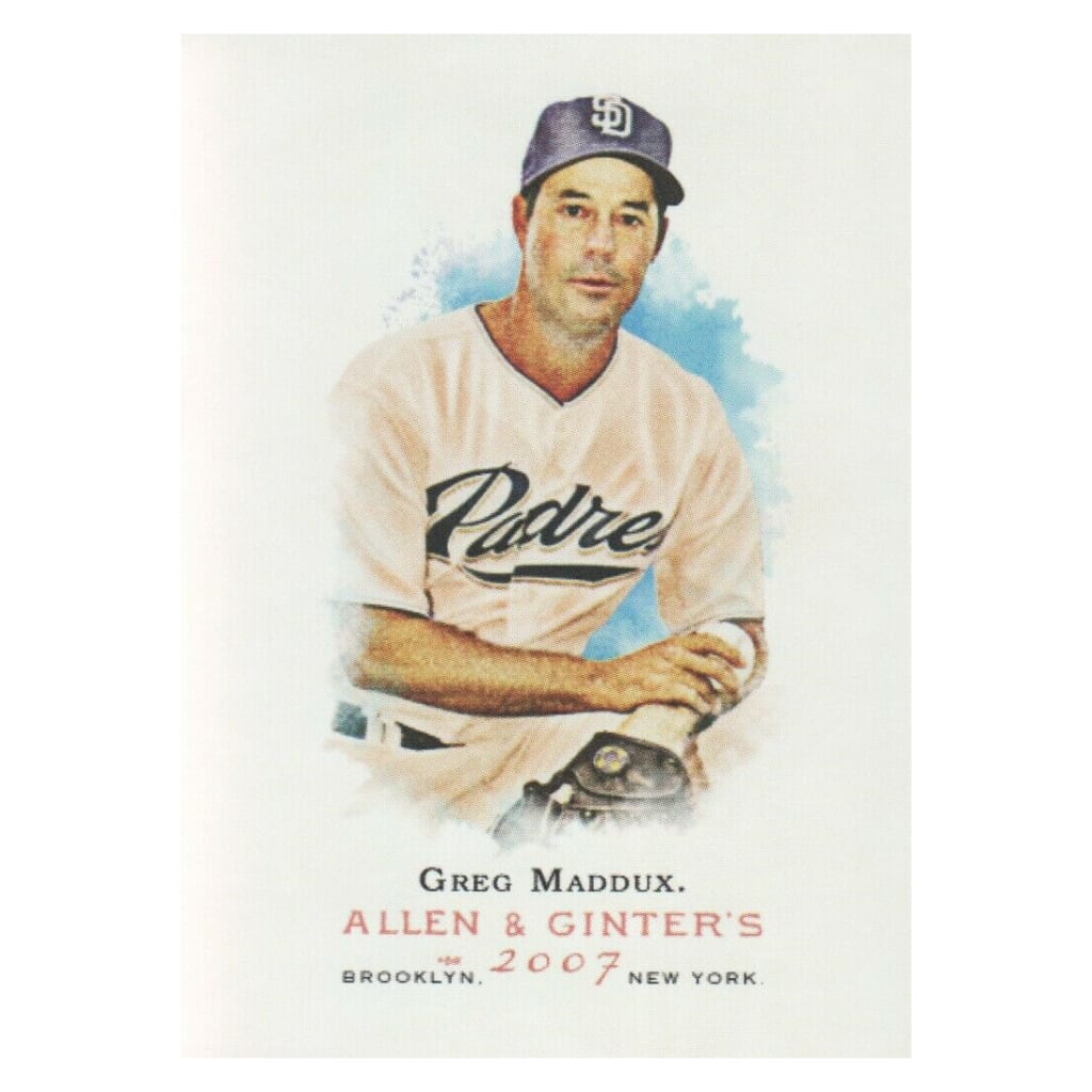 This is a really nice card of Maddux -- Allen & Ginter cards often are -- as the veteran pitcher poses with his arms folded on his knee.