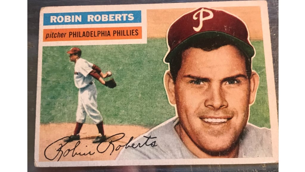 “I first started collecting baseball cards around 1955,” Walsh wrote. “My favorite player was Phillies pitcher Robin Roberts. His 1956 card included a smiling portrait, an action shot, an autograph and on the back the cartoons illustrating his accomplishments and statistics. The perfect card for me.”