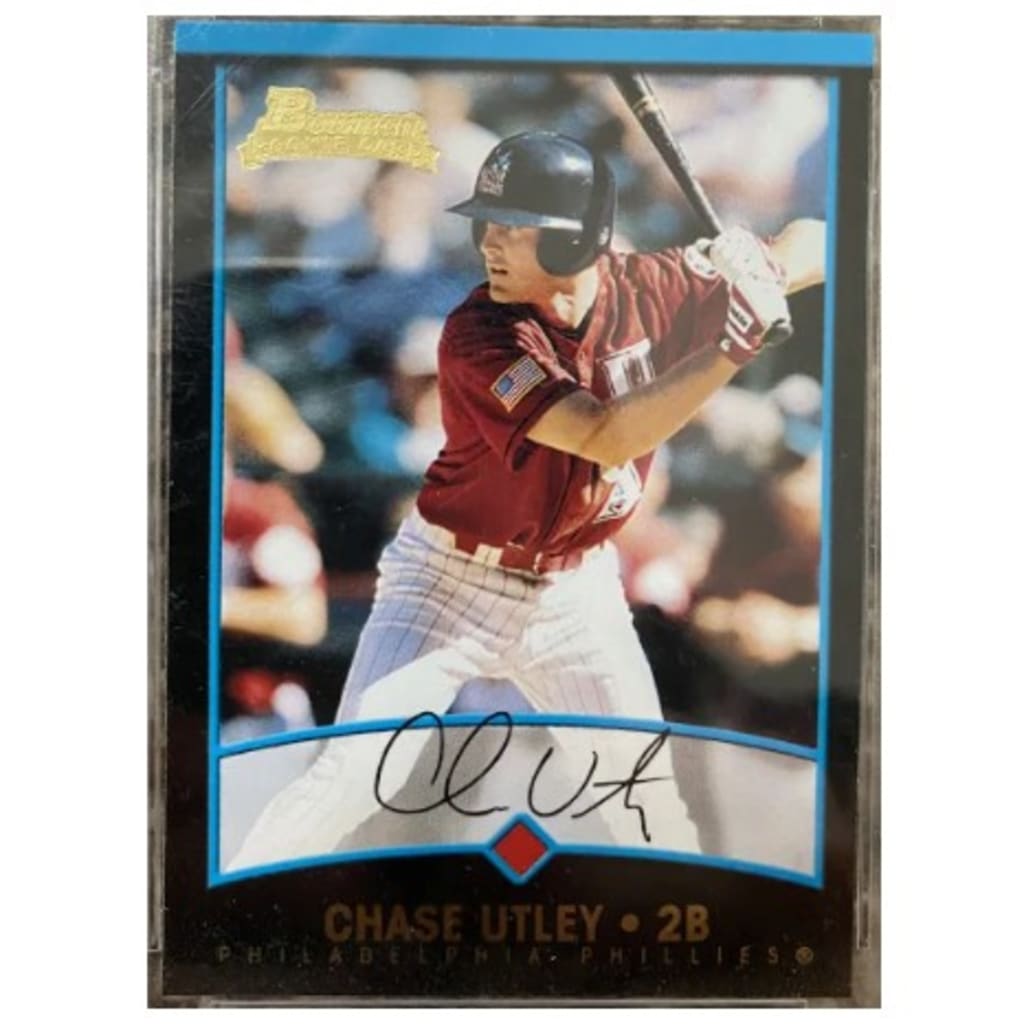 One of his earliest appearances was in the ‘01 Bowman set. The card depicts Utley in his familiar batting stance while playing for Team USA at the ‘01 Futures Game -- a game that saw the second baseman go deep off Cubs prospect Juan Cruz.
