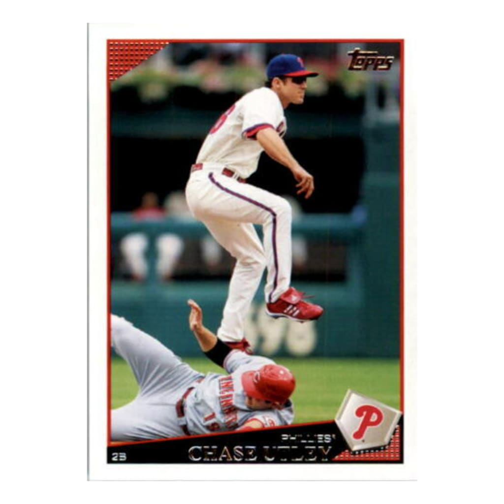 You don't see that many cards showing the fielder mid-double play turn, so that makes this Utley card extra-cool from the start.