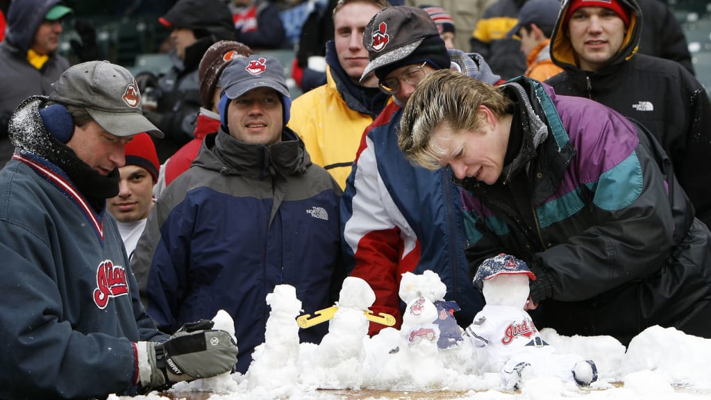 Winter weather delayed the start of Cleveland's 2007 home opener, but this enterprising group of fans didn't let the flurries get them down and put together a really impressive snowman lineup -- weirdly reminiscent of Indians pitcher Carlos Carrasco's baseball doll collection.