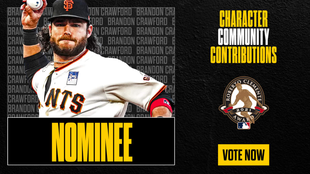 \n","providerName":"Twitter","providerUrl":"https://twitter.com","thumbnail_url":null,"type":"oembed","width":550,"contentType":"rich"},{"__typename":"Markdown","content":" \n\n \n\n \n\n \n\n \n\n \n\n“It’s definitely a huge honor to be nominated for an award named after not only such a great baseball player, but such a good person off the field,” Crawford said. “He was generous with his time and money and tried to help out any way he could off the field. That’s what we try to do. If we’re in a position where we can help others, we try to do the same thing.”","type":"text"},{"__typename":"Markdown","content":" \n\n• All-time Roberto Clemente Award winners","type":"text"},{"__typename":"Video","contentDate":"2021-09-16T03:50:27.419Z","preferredPlaybackScenarioURL({\"preferredPlaybacks\":\"mp4AvcPlayback\"})":"https://mlb-cuts-diamond.mlb.com/FORGE/2021/2021-09/15/564a4d2a-7173f062-b1ba5212-csvm-diamondx64-asset_1280x720_59_4000K.mp4","type":"video","description":"The Giants broadcast duo share some kind words on Roberto Clemente on his special day, celebrating Clemente's nostalgic legacy","displayAsVideoGif":false,"duration":"00:01:15","slug":"giants-booth-on-clemente-day","tags":[{"__typename":"GameTag"},{"__typename":"TeamTag","slug":"teamid-137","title":"San Francisco Giants","team":{"__ref":"Team:137"},"type":"team"},{"__typename":"TaxonomyTag","slug":"no-pre-roll","title":"no pre-roll","type":"taxonomy"},{"__typename":"TaxonomyTag","slug":"highlight","title":"highlight","type":"taxonomy"},{"__typename":"TaxonomyTag","slug":"international-feed","title":"International Partner feed","type":"taxonomy"},{"__typename":"TaxonomyTag","slug":"eclat-feed","title":"Eclat feed","type":"taxonomy"}],"thumbnail":{"__typename":"Thumbnail","templateUrl":"https://img.mlbstatic.com/mlb-images/image/private/{formatInstructions}/mlb/asvnx1v0wuxa8ddd2guq"},"title":"Giants booth on Clemente Day","relativeSiteUrl":"/video/giants-booth-on-clemente-day"},{"__typename":"Markdown","content":" \n\nCrawford and his wife, Jalynne, have lended their support to numerous charitable endeavors over the years, including the ALS Cure Project, which became the beneficiary of the annual Crawford Family Golf Tournament in 2019. Crawford’s relationship to A’s outfielder Stephen Piscotty, a fellow Pleasanton native who lost his mother, Gretchen, to ALS, helped inspire him to join the mission to find a cure for the disease.\n\n“We try to spread it around a little bit to any project that needs a little bit of extra help, but knowing the Piscottys for a little while -- our dads were friends for a long time -- to be able to help with ALS Cure is definitely special to us,” Crawford said.\n\nCrawford also teamed up with the Giants Community Fund to help renovate Gilman Field in San Francisco’s Bayview-Hunters Point neighborhood, just blocks from where the All-Star shortstop grew up attending Giants games at Candlestick Park. That project had been in the works since Crawford signed his first six-year, $75 million extension with the Giants in November 2015, as he elected to donate a portion of his contract to the Giants Community Fund. The field renovation was completed this year, with Crawford on hand for the official unveiling in July.","type":"text"},{"__typename":"OEmbed","html":"